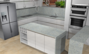 Cocina-piso-marmol-crema-marfil-mesones-granito-blanco-dallas